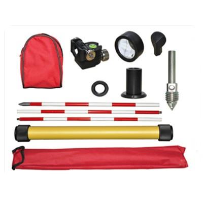 Three screw-on steel rod to extend to 1.8m with aluminum tube packing & carrying bag. Prism offset: 0 constant. 38mm mini prism.